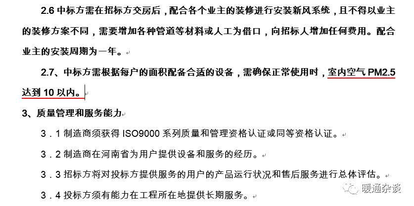 在某住宅地產項目關于全熱交換器新風系統招標文件中是這樣要求的